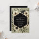 A vintage-inspired design features a tapestry of deep olive foliage and a scattering of muted cream anemones and roses. This artwork evokes a sense of old-world charm and sophisticated elegance for a memorable occasion.
