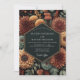 Richly detailed florals in deep sienna, amber, and ochre create a dramatic and opulent atmosphere. This design evokes the warmth and beauty of a fall harvest, perfect for a sophisticated autumn event. The blooms feature intricate textures reminiscent of dahlias and thistle.