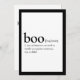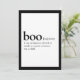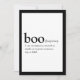 Une invitation chic et élégante à la fête d'Halloween, avec un camaïeu simple de couleurs monochromes. Sur le devant, il y a une définition de dictionnaire du mot "boo" qui utilise des polices contrastées en noir sur un arrière - plan blanc avec une simple bordure noire autour de l'extérieur. De l'autre côté, il y a beaucoup de place pour que vous remplissiez les détails de votre événement. Ce serait parfait pour une soirée Halloween chic ou pour toute personne ayant un événement Halloween plus sophistiqué pour les adultes.