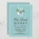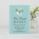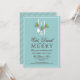 Des ustensiles décorés de saints d'hiver et attachés à de jolis petits arcs - un design génial pour les clients invitations de chez vous pour "Manger, boire et être Joyeux !" cette saison des fêtes. Avec des éléments blancs, de la typographie brun chocolat foncé, sur un arrière - plan aqua turquoise doux.