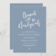 Vous organisez une célébration de brunch avec les jeunes mariés le lendemain du mariage ? Invitez vos invités avec cette carte d'invitation de Brunch d'après mariage au thème bleu poussiéreux et au design rustique moderne "Brunch avec les jeunes mariés". Ajoutez les détails de votre célébration de brunch de pour toujours. #TeeshaDerrick