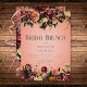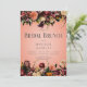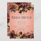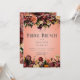 Ce design simple et rustique pour un déjeuner de fête prénuptiale comprend une bordure supérieure et inférieure de fleurs réalistes de couleur bordeaux, pêche, orange brûlé, or et violet prune avec un feuillage vert foncé sur un fond de pêche poussiéreux. Le texte apparaît sur un ovale flou blanc doux. Romantique et élégant. Créé par Simply Farmhouse Press.