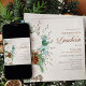 Invitation de mariage d'hiver avec roses blanches, cônes de pin, coton, verdure et eucalyptus. Cette aquarelle fleurie et feuillage est posée sur un arrière - plan neutre avec une calligraphie élégante en brun de cuivre. Parfait pour l'automne, l'hiver, le nouvel an et les thèmes mariages de Noël. Veuillez naviguer dans mon magasin pour trouver les articles correspondants dans la collection de roses blanches d'hiver.