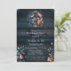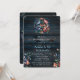 Un clipart d'aquarelle illustrant un bouquet de pivoines bleu marine et cuivre enroulé dans une corde en acier et un fil de cuivre. Les pivoines ont des garnitures en or sur leurs pétales. Il y a aussi des petites fleurs de la même couleur que les pivoines du bouquet. Planches en bois bleu marine pour l'arrière - plan. Des gaufres aux bleuets accompagnent le thème de la marine et un verre à vin.