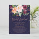 Cette carte d'invitation à déjeuner rose d'or floral automne est parfaite pour une douche nuptiale d'automne. Le design comprend un bouquet époustouflant de pêche à l'orange et de fleurs bordeaux marsala, avec typographie et confettis en feuille d'or rose. Le fond est orné d'une magnifique couronne de fleurs qui peut être personnalisée avec le nom de la future mariée. Remarque : Ce design ne présente pas de véritable feuille d'or rose. C'est un graphisme de haute qualité fait pour ressembler à du papier doré rose.