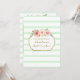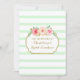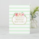 Invitation à déjeuner nuptiale personnalisée en motif vert menthe pastel et rayures blanches, fleurs d'aquarelle rose vintage et détails or.