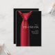 Une carte de demande de garçon d'honneur élégante avec une cravate rouge, avec un nœud Windsor, sur une chemise noire. (Vctz) <br/><br/>La carte est facile à personnaliser avec votre libellé, police, couleur de police et choix parmi six types de papier.<br/><br/>Vous ne trouvez pas exactement ce que vous cherchez ? Tous nos produits peuvent être conçus sur mesure pour répondre à vos besoins sans frais supplémentaires.<br/><br/>Contactez-nous simplement à askpixieprints@aol.com.<br/><br/>Produits de coordination disponibles :
