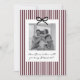 Vous cherchez une façon douce et significative de demander à vos proches d'être les parrain et marraine de votre bébé ? Ce modèle de carte est le moyen idéal pour poser la question ! Que vous demandiez à un membre de la famille ou à des amis proches, ce modèle vous aide à créer un moment sincère qu'ils garderont à jamais en mémoire. Ce design présente un fond rayé bordeaux et un nœud noir, ainsi qu'un espace pour une photo de votre choix. Vous pouvez modifier la couleur des rayures, du nœud et de tout le texte de ce design.