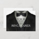 Cartes de demande de participation au mariage élégantes pour le porteur d'alliances en smoking - Fond en smoking noir formel avec nœud papillon. Indique 'Votre présence est demandée en tant que porteur d'alliances'. Modifiez pour personnaliser les demandes de participation au cortège de mariage pour tous vos garçons - témoin, garçons d'honneur, porteur d'alliances et jeunes garçons d'honneur. Vous avez trouvé la fille, maintenant il est temps de rassembler les garçons !