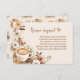Rassemblez des recettes pour la future mariée avec cette adorable carte de demande de recette jointe. La carte demande aux invités d'apporter une recette et correspond à l'invitation de la douche nuptiale coordonnatrice. Présentant une charmante tasse à café nichée dans des fleurs d'automne avec un joli motif sur le dos, cette carte est parfaite pour toute douche nuptiale.