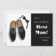 Une façon tendance de demander à des hommes de faire partie de votre cortège de mariage. Parfait pour le témoin, les garçons d'honneur et plus encore. (<a href='http://www.freepik.com/free-vector/man-shoes-and-bow-tie_1053548.htm'>Conçu par Freepik</a>). <br/><br/>La carte est facile à personnaliser avec votre texte, police, couleur de police et choix parmi six types de papier.<br/><br/>Pas exactement ce que vous cherchez ? Tous nos produits peuvent être conçus sur mesure pour répondre à vos besoins sans frais supplémentaires.<br/><br/>Contactez-nous simplement à askcottonlamb@gmail.com<br/><br/>Produits coordonnés disponibles :