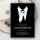 Invitez vos garçons d'honneur avec cette carte de demande moderne mettant en vedette un smoking classique. Ajoutez simplement vos informations d'événement sur ce modèle facile à utiliser pour en faire une invitation unique. Retournez la carte pour révéler un motif de rayures noires et blanches au dos de la carte.