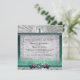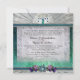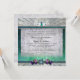 Le paon de verre émeraude aux accents de plumes de diamant et d'émeraude recouvrant des plumes de dentelle blanche s'est évanoui au-dessus d'un ruban émeraude turquoise. Panneau de dentelle avec bordure de perle. parties scintillant de fleurs lilas feuilles turquoises et paons contre un arrière - plan émeraude émeraude.