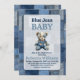 Invitation Denim Patchwork Bear Toy Blue Jean Baby Shower