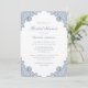 Élégante invitation à la douche nuptiale bleu poussiéreux avec dentelle florale bleu poussiéreux et une police de caractères élégante. Personnalisez facilement en ligne. Objets correspondants disponibles pour compléter ces invitations vintages à la douche nuptiale bleu poussiéreux.
