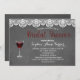 Dégustation de vin rustique unique pour un événement de Fête des mariées rustique, avec un verre de vin rouge, dentelle vintage, de belles fontes sur un arrière - plan de tableau noir. Le texte, la police et la couleur des polices peuvent tous être customisés. Utilisez l'outil Customiser pour ajouter vos informations. Vous pouvez trouver ce design sur d'autres papeteries mariages dans ma Vignoble, Collection de thème Mariage de vin.