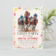 Course moderne Horse Derby Party Equestrian Invitation Modern Horse Race Derby Party Invitation avec une illustration d'un cheval de course avec jockey et motif rayé sur le dos. Tous les éléments de texte peuvent être changés afin que ce design puisse être utilisé pour d'autres événements aussi : faire-part de mariage équestre classe, fête d'anniversaire de cheval, fête de montre de derby, ouverture de grange de cheval et plus encore. Arrière - plan, la couleur de l'illustration et les couleurs du texte peuvent être changés à l'aide de l'outil de conception!