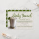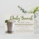 Invitation vos invités dans le style avec cette invitation moderne avec une photo d'un cocktail classique de jupe à la menthe. L'avant incorpore du texte dans les tons vert, gris et crème bronzés. Les mots "Derby Brunch" sont créés comme une illustration que vous pouvez supprimer et remplacer par une ligne de texte si vous voulez modifier le titre de votre parti. Le reste du texte est entièrement personnalisable en utilisant les modèles simples et fournis. Le revers est imprimé avec un motif de Jacquard amusant et classique dans les tons vert et gris, donnant un aspect traditionnel de course à l'invitation. Parfait pour le Derby Day ou tout événement à thème de course à cheval!