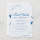 Surprenez vos copines avec cette invitation de bachelorette élégante, avec un fond bleu pâle, une illustration de cocktail mignonne et des détails modifiables. Personnalisez-le facilement en cliquant sur l'option "personnaliser".