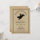Célébrez les derniers jours de liberté du marié avec cette invitation de soirée d'enterrement de vie de garçon "Dernier Rodéo". Avec son fond de style parchemin vintage et sa silhouette noire audacieuse de cavalier de rodéo, cette carte capture une esthétique robuste et western parfaite pour une soirée ou un voyage au rodéo. La typographie classique et le double cadre donnent un style intemporel et masculin. Ce modèle est 100 % personnalisable : mettez facilement à jour le nom, la date, l'heure et le lieu pour correspondre à votre événement spécifique. Que vous alliez à un vrai rodéo ou que vous organisiez simplement un barbecue dans la cour avec les garçons, cette invitation donne le ton parfait pour un week-end déjanté.
