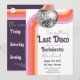 Dernier itinéraire de soirée de bachelorette disco et modèle d'invitation. Téléchargement personnalisé, éditable, rétro groovy disco soirée adulte
