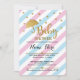 invitation de Baby shower rayé rose et bleu pour un genre révélateur ou jumeaux. Impression arrière incluse. Changez le texte noir pour convenir à votre fête !