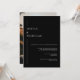 Voici notre Faire-part de mariage classique de photo noir & blanc élégant et moderne. Ce design sophistiqué est doté d'un arrière - plan noir chic et croustillant associé à une typographie blanche moderne et élégante. Au verso est l'option de télécharger votre photo. L'esthétique minimaliste dégage une élégance intemporelle, ce qui en fait le choix idéal pour les couples contemporains qui apprécient la simplicité et le style. Idéal pour donner le ton à un mariage moderne et chic, cette invitation saisit l'essence du raffinement. Personnalisez avec vos détails. Voir d'autres produits de la collection.