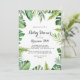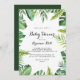 Cette invitation à baby shower de verdure tropicale de destination est parfaite pour un baby shower simple. Le design se compose de palmiers verts aquarelés peints à la main et de feuilles de bananes soigneusement arrangés en de beaux bouquets.