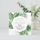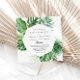 Cette destination géométrique de faire-part de mariage espagnole tropicale est parfaite pour un mariage simple. Le design se compose de palmiers verts aquarelés peints à la main et de feuilles de bananes soigneusement arrangés en de beaux bouquets, ornant un cadre géométrique.