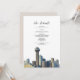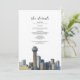This DIY PRINTABLE wedding invitation template features a watercolor Dallas Texas city skyline. Use this template to edit the fonts, font color, and background color to match your event needs.