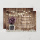 Cartes de détails de mariage avec guirlande de lumières et fleurs de lavande et baby's breath dans un pot Mason