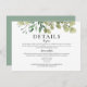 Carte d'information sur l'hébergement Détails de mariage élégants aquarelle verdure. La conception présente une mise en page de texte de style moderne élégant. Pour apporter des modifications avancées, veuillez sélectionner l'option "Cliquez pour personnaliser davantage" sous Personnaliser ce modèle.