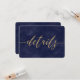 Couleur de fond personnalisable Simple Navy Aquarelle & Or pour toute palette de couleurs de mariage, cliquez simplement sur le lien de personnalisation pour changer la couleur de fond ! Avec une typographie de mariage amusante en faux or et des polices de caractères modernes. Cartes de détails de mariage simples et élégantes ~ Découvrez ma boutique pour voir toute la collection de mariage avec ce design !