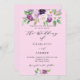 Un fond rose. Décoré de fleurs et de verdure peintes à l'aquarelle violette. Personnalisez et ajoutez vos noms et les détails de la fête.