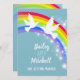 Double face colombe blanche colorée avec arc-en-ciel étoiles invitations de mariage. Conçu pour un mariage à thème arc-en-ciel hébergé par le couple à épouser. Personnaliser avec vos propres détails contient le texte RSVP détails. Conçu par Sarah Trett pour www.mylittleedenweddiings.com sur zazzle.