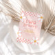 Invitation rétro pour un 2ème anniversaire inspirée des années 70 avec des polices, des marguerites et un motif à carreaux dans le style des années 70.