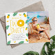 Célébrez le deuxième anniversaire de votre enfant avec ces adorables invitations d'anniversaire d'ananas ! Les invitations portent l'expression "Two Sweet" avec un anneau d'ananas et des lettres jaunes manuscrites. De jolies illustrations d'ananas, de tranches d'ananas et de feuilles tropicaux verts entourent vos détails de fête. Personnalisez l'avant de l'invitation avec les détails de votre fête et la photo verticale. Le verso des invitations d'anniversaire de la photo affiche un motif d'ananas correspondant. Les invitations de la fête d'anniversaire photo sont parfaits pour les fêtes d'été ou de 2ème anniversaire à thème tropical !