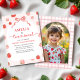 Célébrez le deuxième anniversaire de votre petite fille avec cette adorable invitation photo Two Sweet Strawberry! Doté d'illustrations ludiques de fraises, d'un accent arc rose et d'un espace pour une photo mignonne, ce design est parfait pour une fête d'anniversaire sur le thème des baies. Idéal pour les fêtes du printemps ou de l'été, il ajoute une touche personnelle et charmante à votre invitation. Customisez avec le nom de votre enfant, la photo et les détails de la fête pour créer une invitation amusante et mémorable que les invités adoreront.