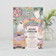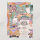 Retro Two Éffrayant Halloween Invitation de fête du 2ème anniversaire - Soyons Super ! Le design comprend un arrière - plan coloré avec un arc-en-ciel boho. Des illustrations cool rétro décorent le modèle simple avec d'adorables fantômes hippies, des fleurs de crâne, une boule de disco éffrayante et des bonbons spooktaculaires.