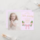 Elle est à deux ! Collection de 2e anniversaire avec un arc rose dainty au milieu d'une couronne de roses. Typographie en or contre un arrière - plan pastel violet. Modèle photo via Pixabay sous licence CC0 et doit être remplacé par votre propre photo