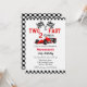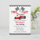 Deux voitures rapides font la course sur les invitations de fête d'anniversaire de ces mignons enfants avec une course de voiture rouge. Thème de voiture de course mignon pour une fête de 2ème anniversaire avec l'illustration d'une voiture rouge vintage avec les mots "Growing up too fast."