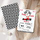Une délicieuse invitation à célébrer l'anniversaire de votre enfant ! Le thème de deux voitures de course Fast Red comprend une voiture rouge, un drapeau de course de voiture, et des flammes. Vous pouvez facilement PERSONNALISER ce design avec vos informations! Si vous avez besoin de coordonner les articles CORRESPONDANTS, veuillez consulter notre collection ou magasin correspondant.