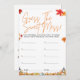 ESPÉRONS THE SWEET MESS Easy Baby shower Game Un petit Citrouille est sur le chemin Thème Ajoutez un élément amusant et interactif à votre baby shower avec notre adorable GUESS THE SWEET MESS Easy Baby shower Game Un petit Citrouille est sur le thème Way! Ce jeu festif présente un design citrouille charmant et des couleurs automnales, parfaites pour les hôtes de tous âges. Caractéristiques clés : automne design floral : Un thème saisonnier et festif avec des couleurs chaudes et des éléments naturels. Matériaux de haute qualité : Imprimés sur des cartons de qualité supérieure pour une sensation de luxe. Message personnalisé : Customisez le jeu avec le nom du bébé, la date d'échéance et les détails de la fête. Enveloppes assorties incluses : vient avec enveloppes assorties pour faciliter l'envoi. Devinez le jeu de gâchis sucré : Comprend un jeu de devinette amusant où les invités essaient d'identifier les douceurs liées aux bébés à partir de descriptions ou d'images. baby shower devinez le jeu de gâchis sucré, jeu de baby shower d'automne, jeux de baby shower, jeux de fête, décorations de baby showers, poster, affiche colorée, affiche personnalisée, thème de baby shower, thème d'automne, thème d'automne, motif d'automne, design floral, design, design citrouille, design, design baby shower thème.