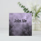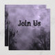 Un modèle d'invitation personnalisé avec des lettres de script grungy noir sur un ciel d'Halloween éffrayant avec des arbres brumeux le long d'une route hantée sombre, corbeaux gothiques et une pleine lune nuageuse avec un brouillard violet. Cliquez sur Customiser pour modifier vos polices, votre taille et plus encore, et même enregistrer votre conception pour plus tard.