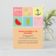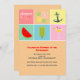 Une invitation de partie d'été comportant cinq icônes d'été et des mots "heure d'été". Perfectionnez pour n'importe quelle célébration d'été. (Icônes plates de couleur d'heure d'été de Vecteezy par le happymeluv). Il est facile customiser la carte avec vos mots, options de police, de couleur de police, de papier de forme et choix de six types de papier.