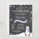 Winter Onederland 1er Anniversaire Invitation. Pingouin. Lavande Lilac violette et Flocon de neige blanc. Premier anniversaire. Première fille Invitation Anniversaire. Arrière - plan de tableau de bord. Noir et Blanc. Pour plus de personnalisation, cliquez sur le bouton "Customiser" et utilisez notre outil de conception pour modifier ce modèle.