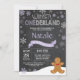 Winter Onederland Snowman 1er Anniversaire Invitation. Un homme en pain d'épice. Lavande Lilac violette et Flocon de neige blanc. Premier anniversaire. Première fille Invitation Anniversaire. Arrière - plan de tableau de bord. Noir et Blanc. Pour plus de personnalisation, cliquez sur le bouton "Customiser" et utilisez notre outil de conception pour modifier ce modèle.