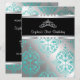 Invitation à une fête d'anniversaire pour fille, princesse, avec diadème en diamant blanc et damassé bleu sarcelle.