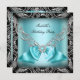 Invitation Diamant Turquoise Bleu Bow Argent Noir fête d'anni