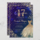 Invitation Diamants dorés Floral bleu Quinceañera